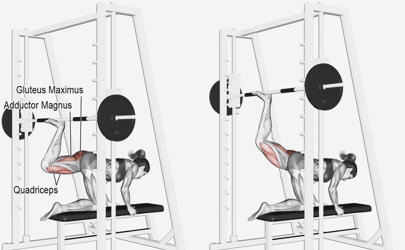 Glute Exercises Kneeling Hip Thrusts On Smith Machine Bigger Hips Workout Smith Machine Workout Hip Thrust Workout